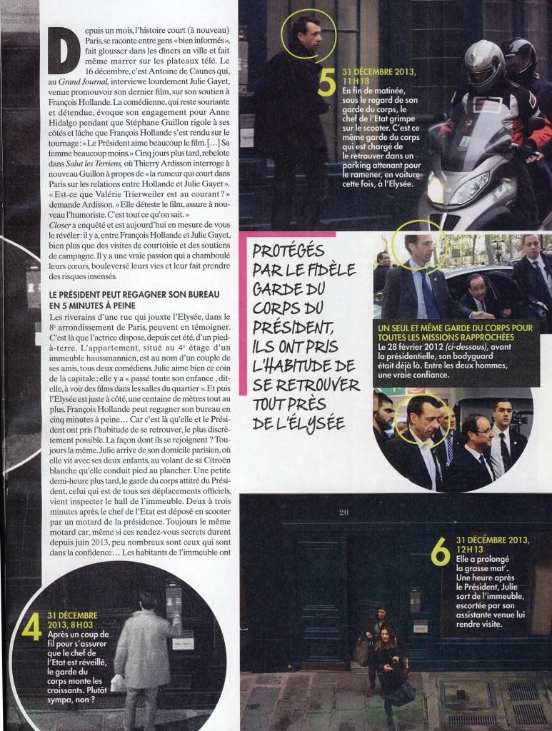 ”Tutto o quasi induceva a credere che tra loro fosse finita. E invece (…) Francois Hollande e Julie Gayet si rivedono…anche se vorrebbero far credere il contrario”, scrive il settimanale, che lo scorso 10 gennaio rivelò la storia clandestina che ha scosso l’Eliseo e ha portato alla rottura tra il presidente e la ex première dame, Valérie Trierweiler.