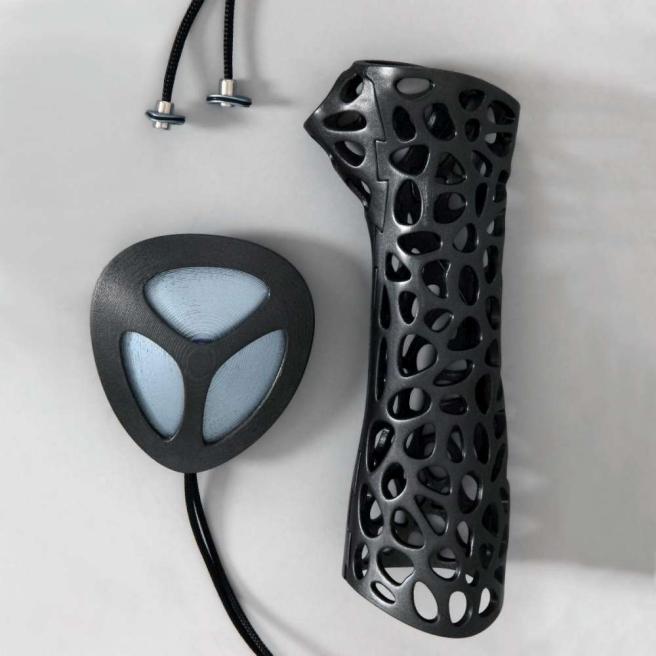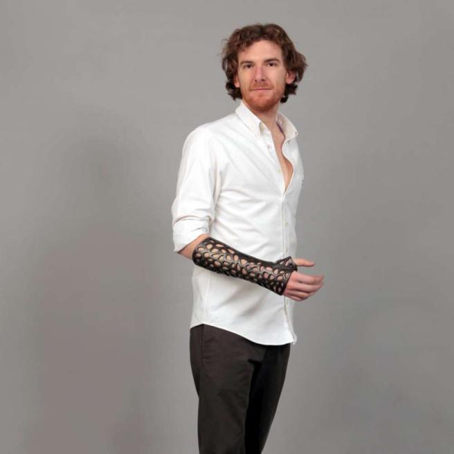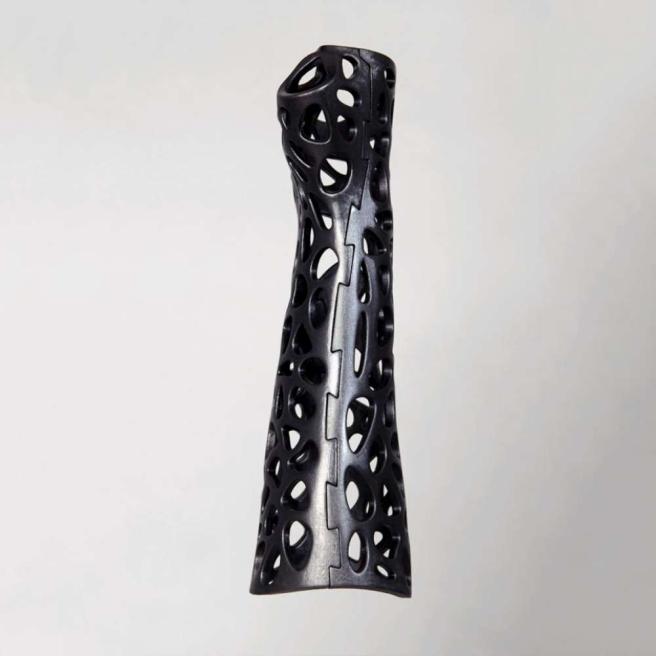 Il guanto avvolge perfettamente l’arto rotto grazie ad un calco fatto sulla persona che lo dovrà indossare attraverso una scansione della parte del corpo interessata.