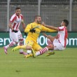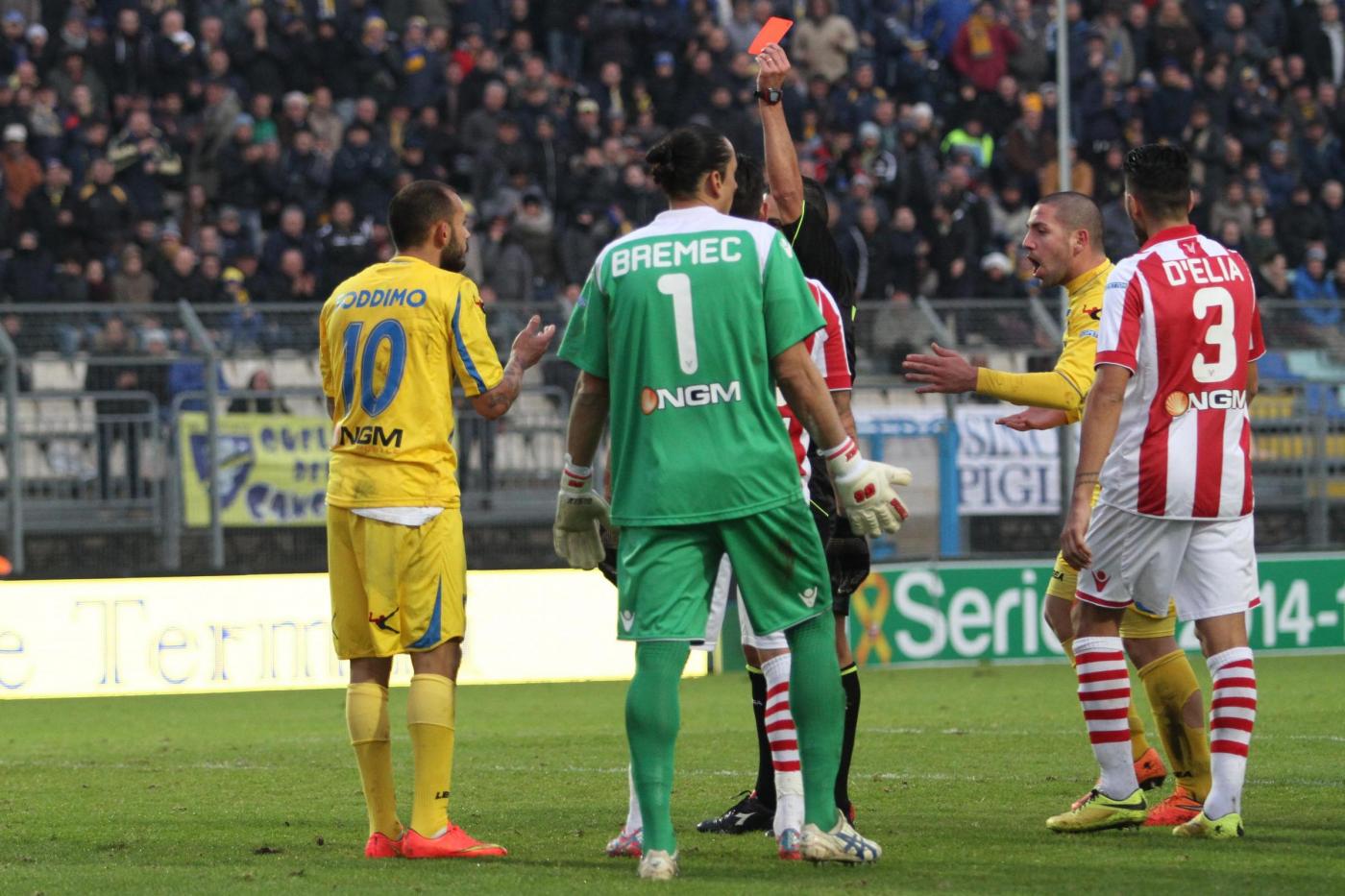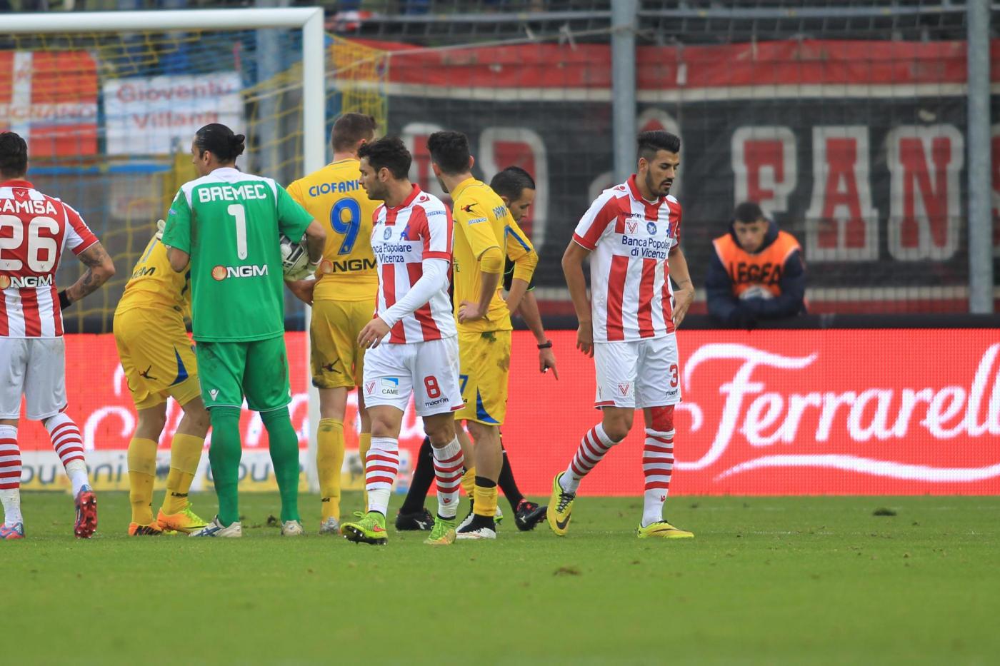 FROSINONE – Il Frosinone รจ tornato al successo dopo cinque turni superando 1-0 il Vicenza grazie al gol realizzato al 19ยฐ del secondo tempo dal ciociaro Gori. La rete comunque era da annullare in quanto sul pallone era entrato in modo attivo l’attaccante Curiale che rientrava da fuorigioco. L’arbitro Roca di Foggia convalidava la rete nonostante il guardalinee avesse ampiamente alzato la bandierina per segnalare la posizione irregolare. Il successo del Frosinone รจ comunque meritato anche perchรฉ al 20ยฐ del primo tempo il direttore di gara non assegnava ai canarini un evidentissimo rigore per intervento di Camisa su Curiale. La gara รจ finita in nove contro nove con quattro espulsioni, due per parte nel corso del secondo tempo, Gentili e Bremec nel Vicenza, Soddimo e Gori nel Frosinone, oltre all’allenatore dei ciociari allontanato dopo dieci minuti di gara, nel corso del primo tempo, su segnalazione del quarto uomo, per aver sfiorato il pallone che non era ancora uscito completamente dal rettangolo di gioco.