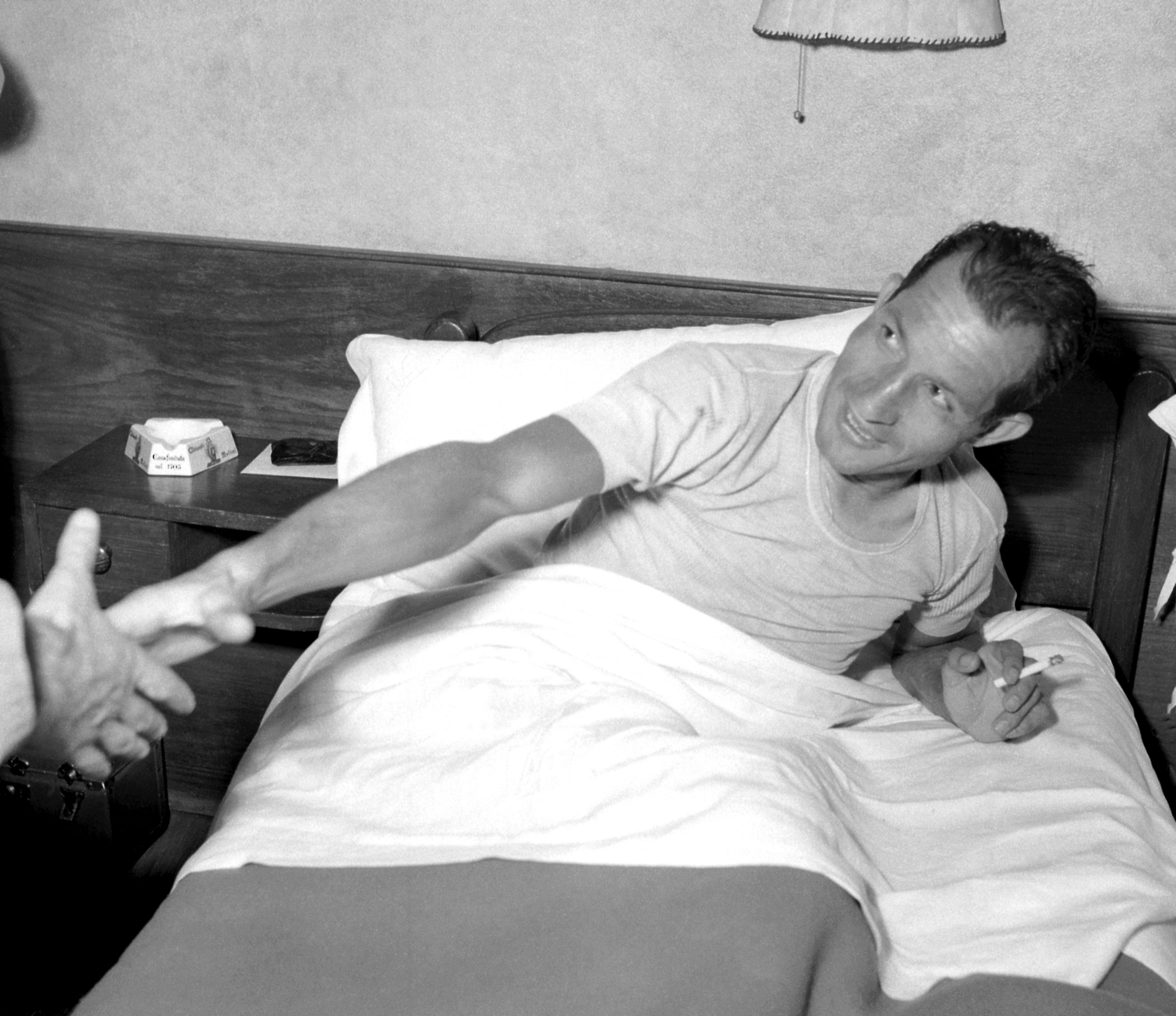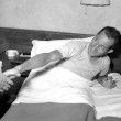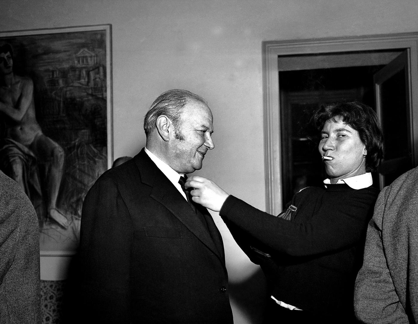 NELLA FOTO: L’ATTORE ITALIANO NINO MANFREDI CON LUCIANA PALUZZI DELLA QUALE SI VEDONO SOLO I PIEDI