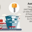 - Parcheggi di centri commerciali, aeroporti o stazioni: si utilizza un disturbatore di frequenza che interviene mentre l’automobilista tenta di chiudere la vettura con il telecomando. Risultato? L’auto resta aperta e il ladro può svuotarla.