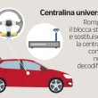 - Centralina universale: rompono il blocca sterzo, utilizzano una centralina decodificata e la sostituiscono a quella della macchina (su alcuni modelli occorre anche la sostituzione dell’antenna che trasmette il segnale dalla chiave alla centralina).