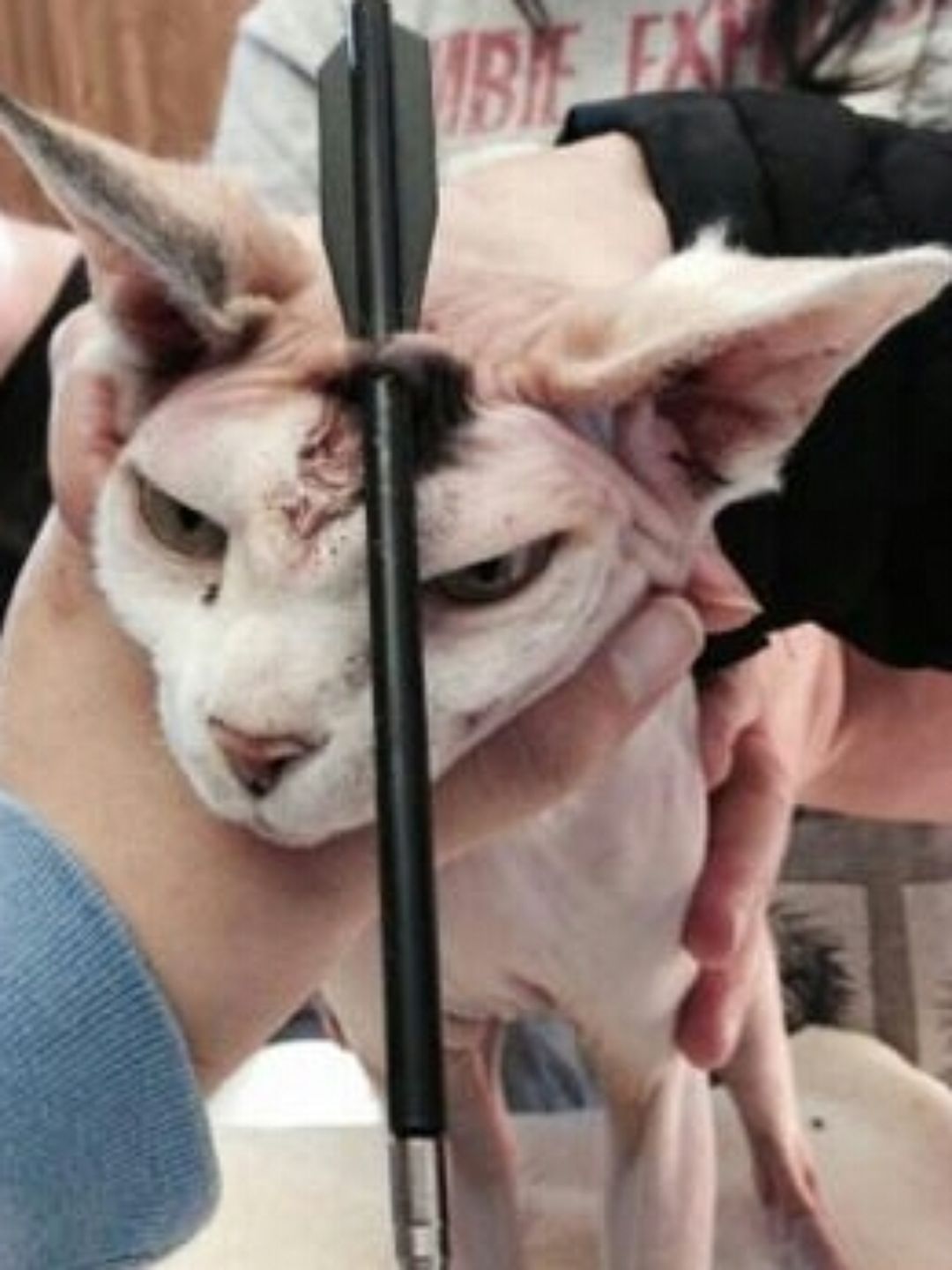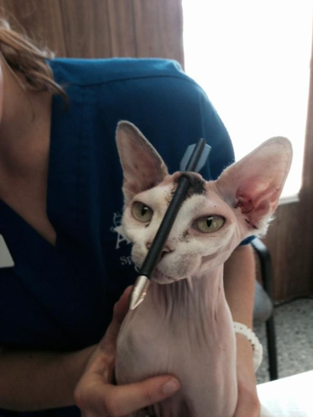 RIVERVIEW (FLORIDA, STATI UNITI) – Akila è un bellissimo esemplare femmina di Sphynx, una razza di gatti canadese facilmente riconoscibile grazie al loro mantello quasi nudo. L’unica volta in cui è uscita di casa è rimasta vittima di un gesto di estrema crudeltà: qualcuno le ha lanciato una freccia che le si è conficcata nella testa.