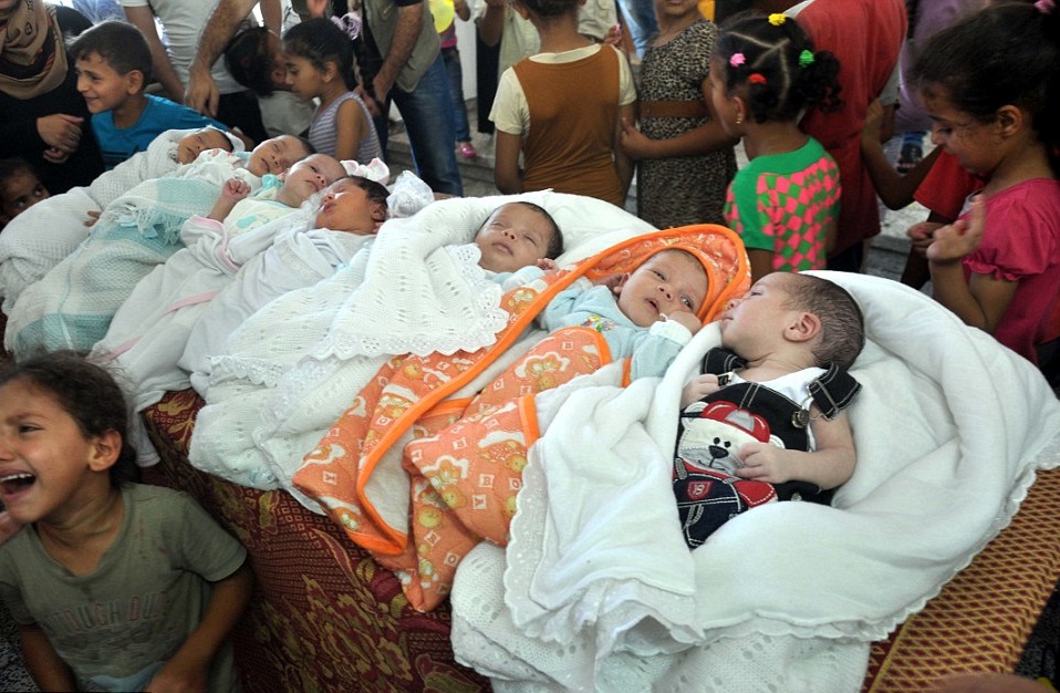 GAZA – Malgrado la tregua terminata tra Israele e Palestina, nei rifugi dell’Onu che si trovano a Gaza, in queste ore sono nati ben sette bambini. Le foto pubblicate dall’Ap li ritraggono avvolti nelle coperte, tutti insieme, all’interno di un rifugio.