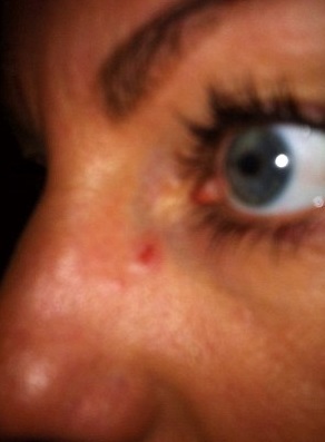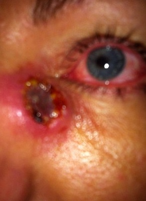“Ho notato questo nodulo quattro anni fa. Era una bolla sotto la pelle, bianca sulla parte superiore. In un primo momento, la cosa non mi ha disturbato minimamente. Ci pensavo solo la mattina quando vedevo allo specchio la bolla che correvo subito a coprire col make-up. Ho pensato che sarebbe andata via col tempo ma Bobby, il mio ragazzo, mi ha detto di andarmi a far controllare. Il nodulo ad un certo punto ha cominciato a sanguinare. Il primo medico che mi ha visitata, mi ha detto di tenere sotto controllo la bolla e di tornare se mi averebbe dato fastidio. La sua reazione sembrava molto rassicurante.. Era marzo 2012: ad aprile 2012 sono andata al Clifton Hospital di Lancashire per un secondo appuntamento, questa volta con uno specialista. Dopo avermi visitata, il medico mi ha detto che avevo un’ulcera roditore. Il medico mi ha detto: “Non so che rapporto abbia lei con i lettini abbronzanti, ma le consiglio di non andarci più””.