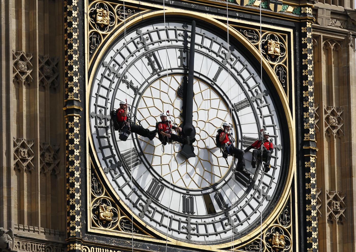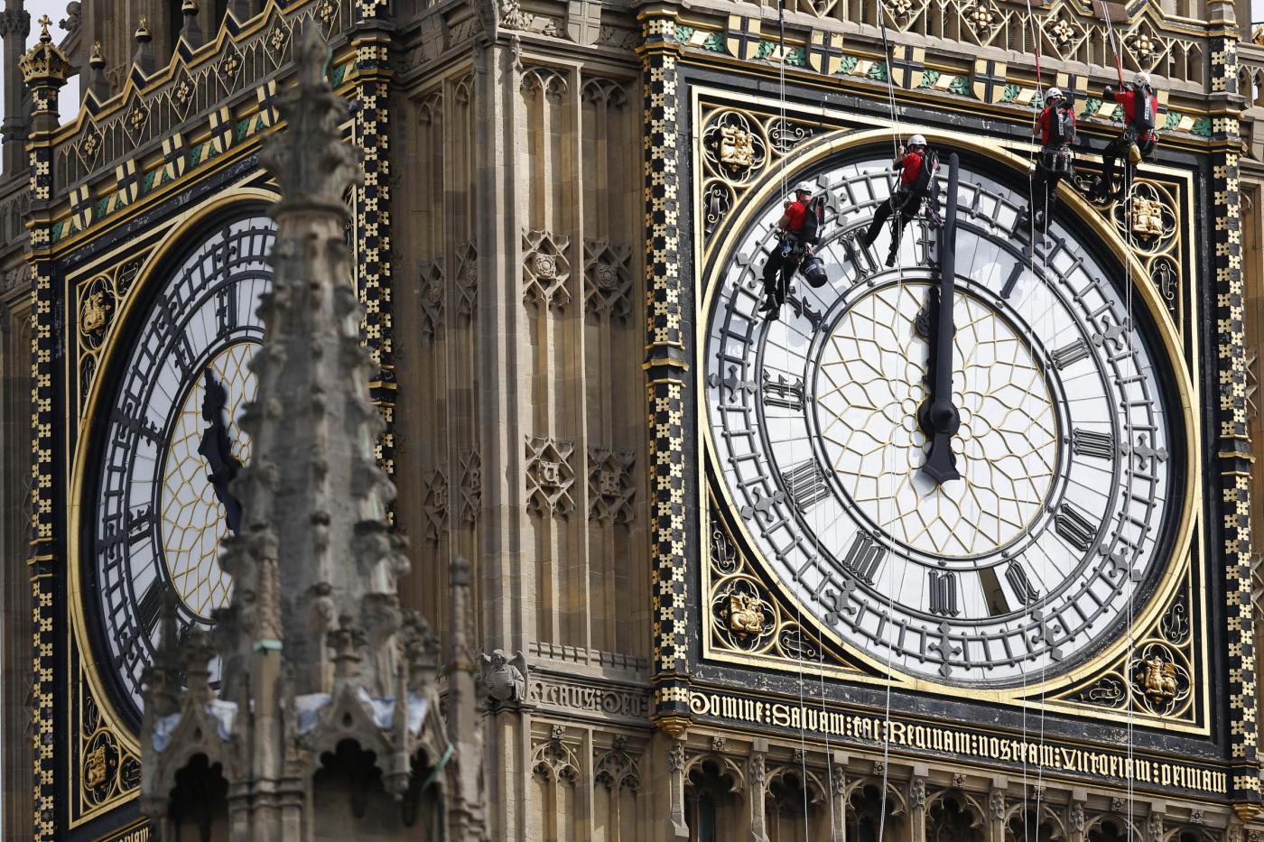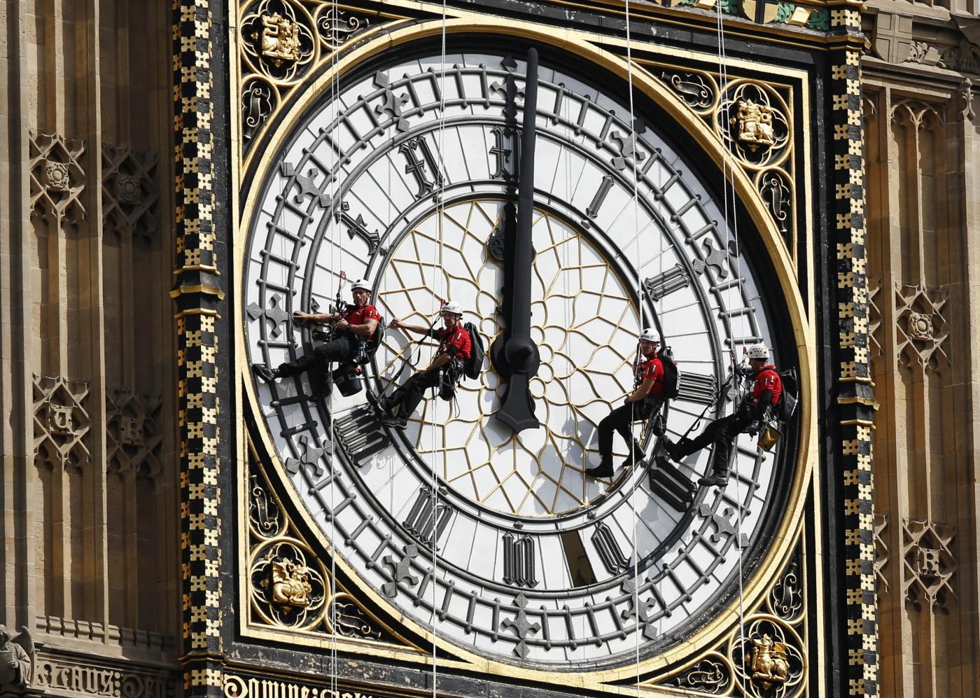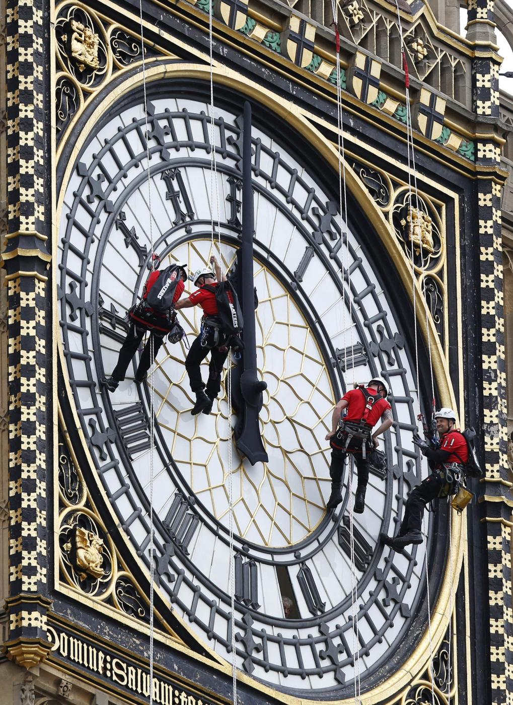 Questa speciale manutenzione, nel corso della quale la torre continua a segnare il tempo, si svolge ogni quattro anni per riparare eventuali parti rotte e ripulire il quadrante. “Il processo è complesso ma abbiamo un ottimo team di esperti che salvaguardano uno dei pezzi più importanti del nostro patrimonio”, ha detto Steve Jaggs, uno dei responsabili nelle operazioni di manutenzione (foto LaPresse)