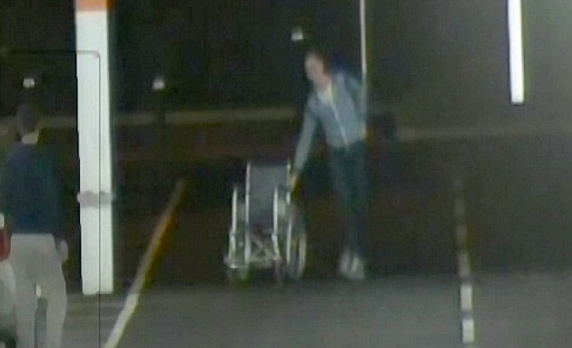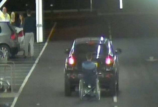 La vicenda è documentata dalle immagini che seguono, pubblicate dal Daily Mail: l’uomo sulla sedia a rotelle viene trascinato avanti e indietro. La sedia era stata trovata per caso nel parcheggio e il ragazzo trascinato non aveva nessuna disabilità: alla fine della scorribanda, come mostra il video, il giovane si alza, entra in auto e lascia abbandonata la sedia a rotelle.