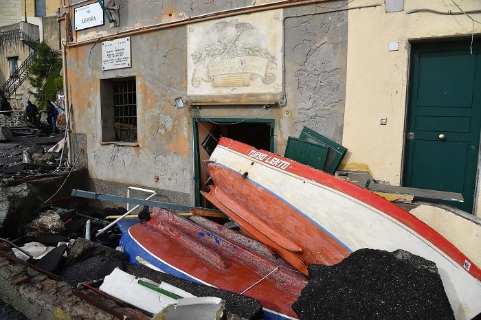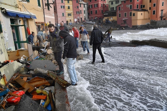 Genova, Boccadasse: borgo marinaro compleamente distrutto dalla mareggiata (foto Ansa)