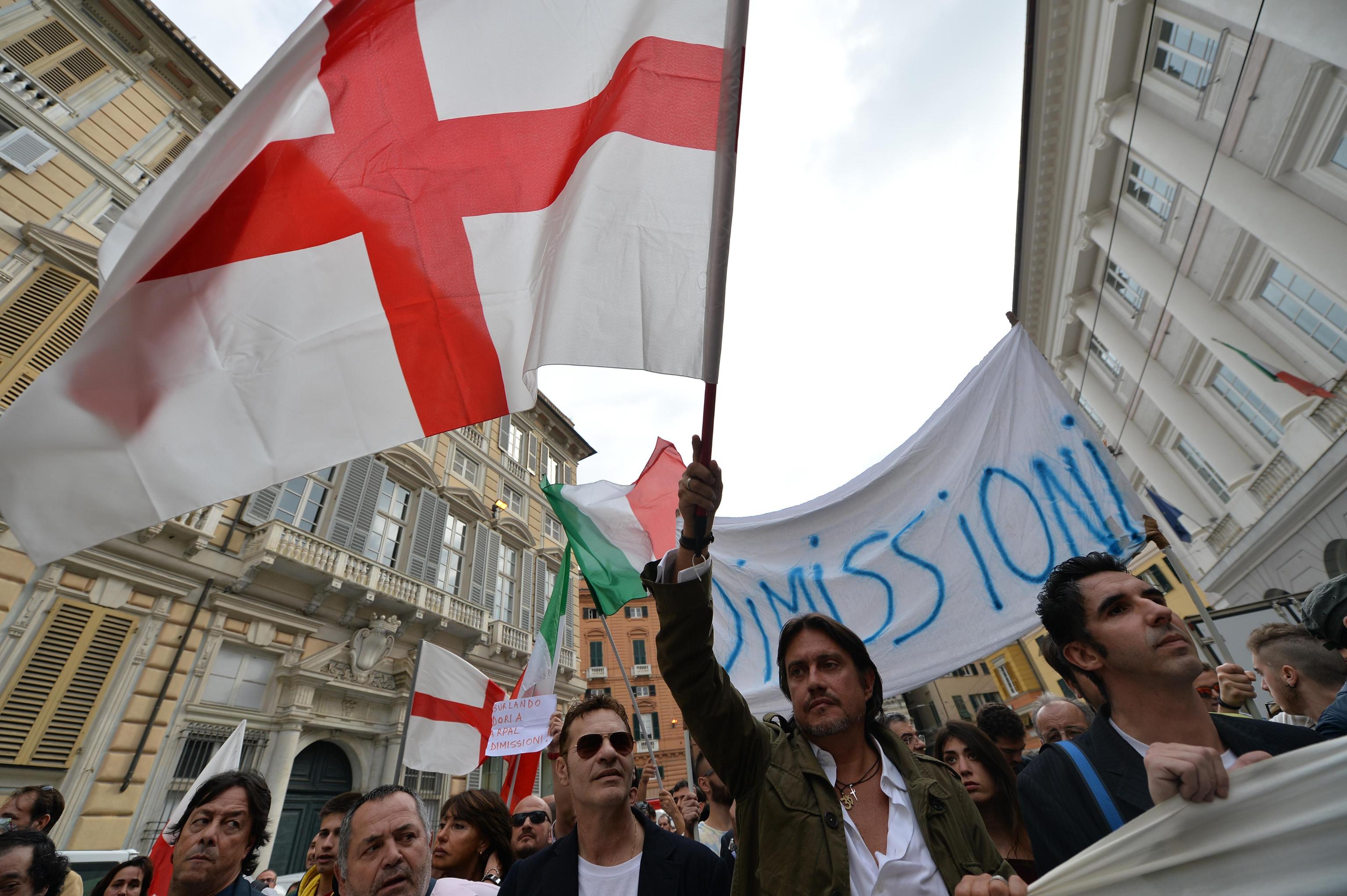 GENOVA – Cristiano De André e Francesco Baccini in testa. E un altro migliaio di persone subito dietro. Tutti uniti, a Genova, per chiedere le dimissioni del sindaco Marco Doria e del governatore della Liguria, Claudio Burlando. Dimissioni sollecitate causa “manifesta incapacità di governare”. Preso di mira dai manifestanti anche il consigliere comunale Mario Baroni (Gruppo Misto), che è stato spintonato e insultato nei vicoli davanti a Palazzo Tursi, prima che iniziasse la seduta del consiglio comunale dove l’esponente politico era diretto. Sempre davanti al palazzo c’è stato anche un lancio di uova, monetine, bottigliette di plastica e altri oggetti.