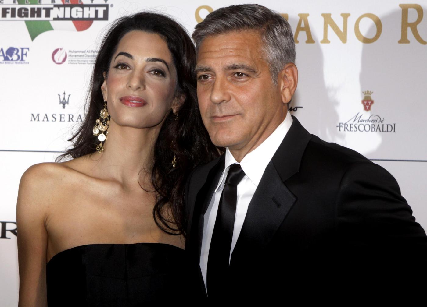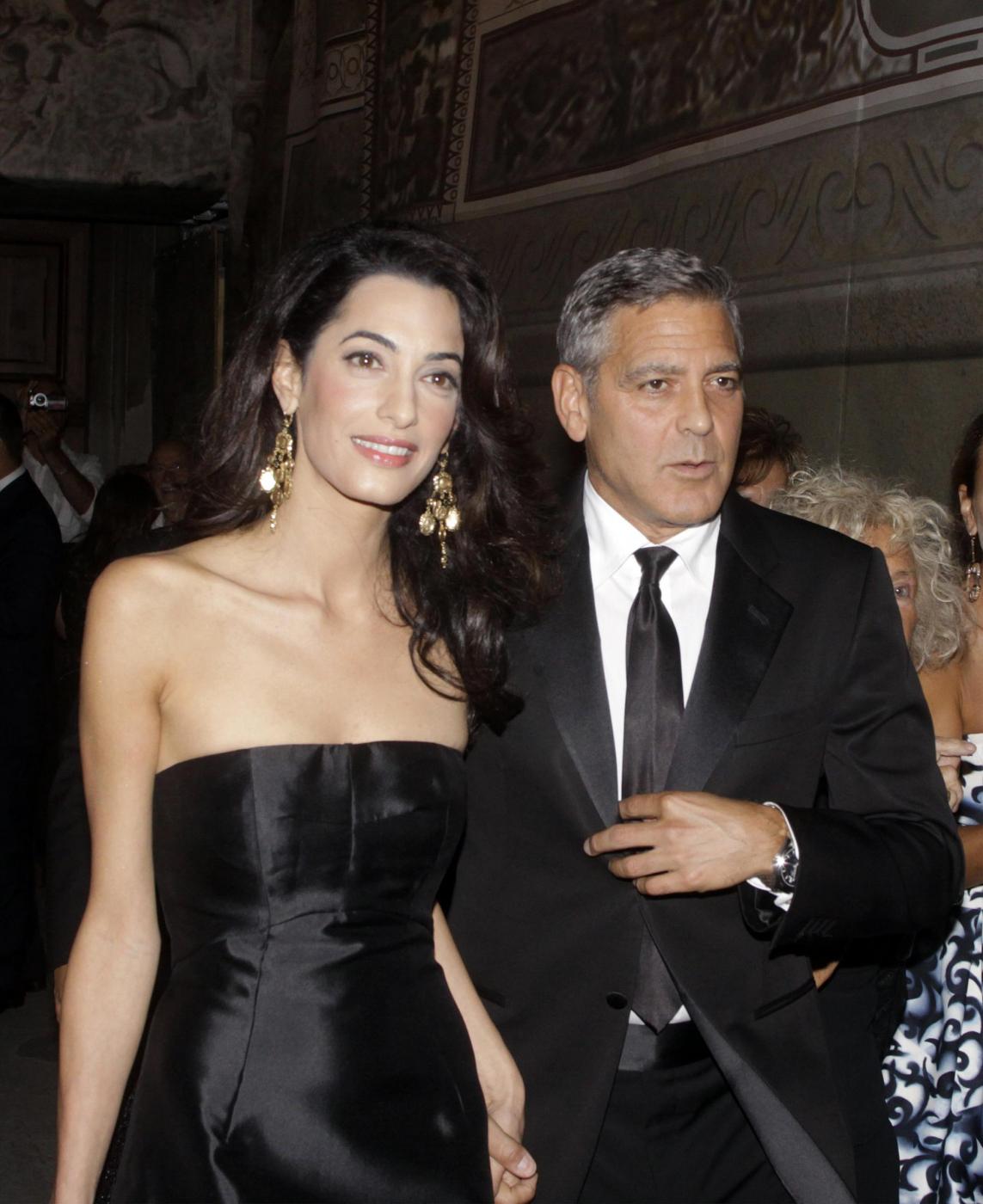 Amal e George hanno partecipato alla cena di gala conclusiva dei festeggiamenti per i super ricchi del mondo arrivati a Firenze per la Celebrity Fight Night voluta da Andrea Bocelli per sostenere la ricerca sul Parkinson per il Muhammad Ali Parkinson Centre e la sua stessa Andrea Bocelli Foundation. Nella sala, davanti agli altri ospiti, Clooney ha dichiarato: “Vorrei dire ad Amal ‘ti amo da morire e non vedo l’ora di diventare tuo marito'”. E lei, a proposito del matrimonio ha subito svelato lo stilista scelto per le nozze: “Mi sposerò con un abito di Oscar de la Renta”.
