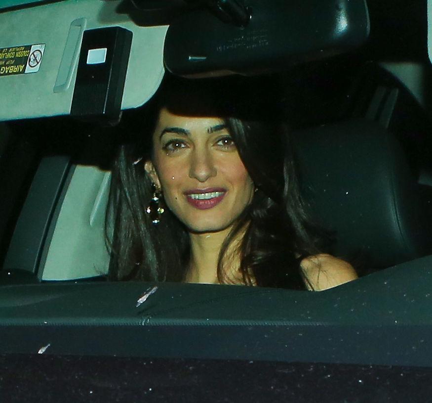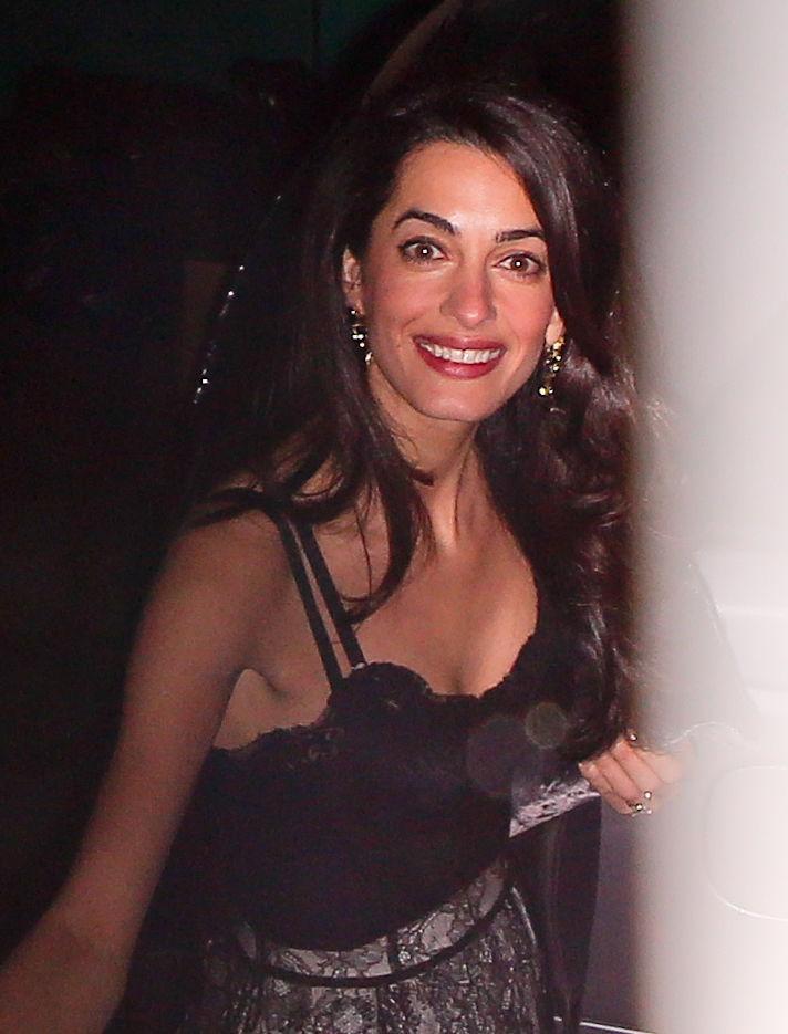 Amal, nelle foto appare elegantissima e solare con top nero di pizzo di Dolce & Gabbama e gonna grigia ricoperta di tulle nero. George, nella foga di depistare i fotografi la trascina nel retro del locale in mezzo au sacchi dell’immondizia del locale.