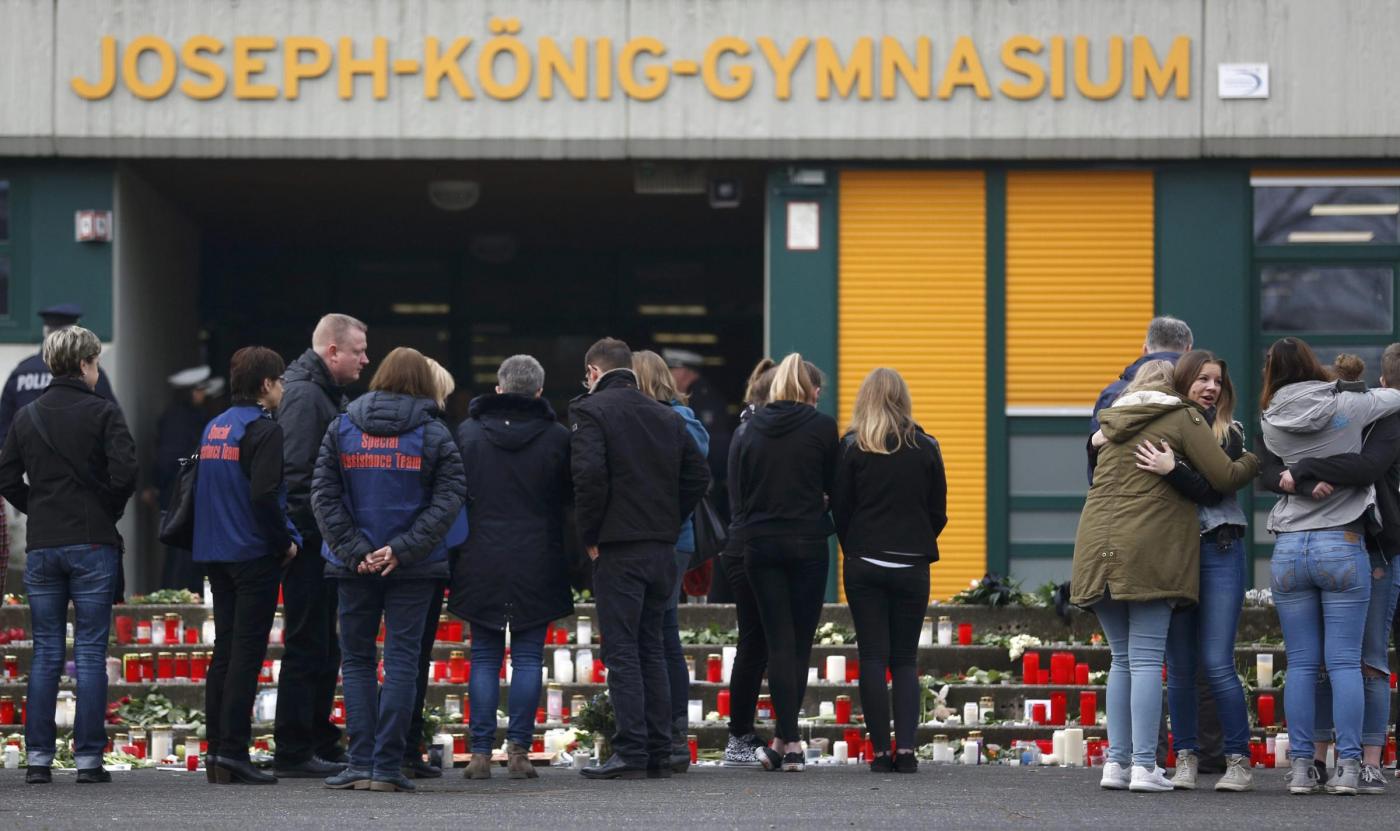 “È il giorno più nero della storia di questa città. Il peggio che ci si possa aspettare”, ha detto il sindaco Bodo Kimpel. Un uomo visibilmente provato, che ha trattenuto a stento il pianto mentre parlava ai giornalisti, in una conferenza stampa improvvisata nel piccolo centro che conta 38 mila anime. “Le famiglie vengono assistite da psicologi – ha anche spiegato – in modo molto professionale”. E la scuola non si ferma: “Ma non si terranno lezioni normali ovviamente – ha detto il sindaco – si cercherà di affrontare con i ragazzi questa terribile esperienza”. Nella piccola città della Westfalia si conoscono tutti, e la tragedia di oggi rappresenta un lutto collettivo, che sarà difficile da superare. Stasera candele e fiori sono le armi per combattere l’angoscia di una catastrofe per ora “quasi impossibile da realizzare”, come ha commentato uno dei tanti testimoni sul posto. “I ragazzi erano di ritorno da una settimana in Spagna dove avevano trascorso un bel periodo. Quello che è accaduto è tragico e terribilmente triste e ci lascia senza parole”, ha commentato la ministra dell’istruzione del Land Sylvia Loehrmann, che nel pomeriggio ha confermato ufficialmente la notizia. E su facebook è comparso il messaggio di cordoglio di un personaggio famoso di questo piccolo centro, il calciatore della nazionale tedesca Benedikt Hoewedes. Le foto LaPresse dei compagni di scuola che ricordano i compagni morti.