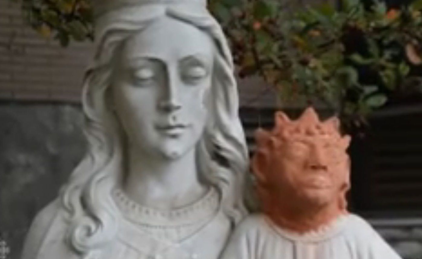 Alla statua in questione, che raffigurava la Vergine col bambino, qualcuno aveva tagliato e rubato la testa di Gesù. E la signora Heather ha provveduto a modo suo. Con un piccolo problema: che la toppa sembra a prima vista decisamente peggiore del buco. La testa di Gesù è marrone e tutto il resto della statua è bianco. Ma non è neppure questo il peggio. Il peggio è come è scolpita la testa: sembra un lavoretto in creta fatto da un bambino. Impossibile capire cosa rappresenti quella testa: c’è chi ci ha visto una scimmia coronata (e un Gesù con testa di scimmia in una chiesa cattolica tende a essere un problema) e c’è chi addirittura ci ha visto la piccola Maggie, la figlia di Homer e Marge Simpson nel noto cartone animato.