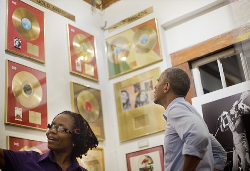 KINGSTON (GIAMAICA) – E’ per Bob Marley il primo omaggio, a sorpresa, di Barack Obama in Giamaica, dove è arrivato per un vertice con i paesi dei Caraibi. Appena sbarcato dall’aereo il presidente americano ha voluto fare una visita al museo dell’icona del reggae assicurando di possederne tutti gli album prodotti nella carriera che si concluse all’età di 36 anni nel 1981 con la morte per un tumore.