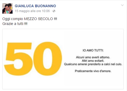ROMA – Gianluca Buonanno, europarlamentare della Lega Nord, è morto il 5 giugno in un incidente stradale sulla Pedemontana a Gorla Maggiore, in provincia di Varese. Buonanno, 50 anni, aveva pubblicato un ultimo post su Facebook lo scorso 15 maggio in occasione del suo 50° compleanno in cui lanciava un ironico messaggio d’amore. L’esponente della Lega nord era conosciuto per la sua ironia sprezzante e più volte aveva attirato l’attenzione dei media con dichiarazioni shock e gesti eclatanti.