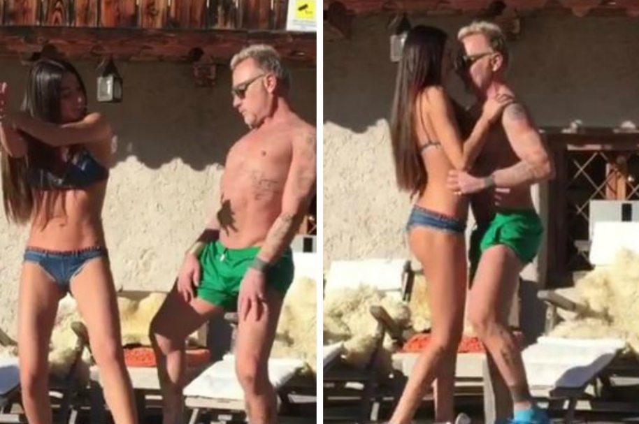 Il balletto sensuale si svolge a bordo piscina in una casa di montagna. Vacchi e la fidanzata, in costume e pantaloncini hanno inaugurato ufficialmente la “Mounting Dancing Season”.