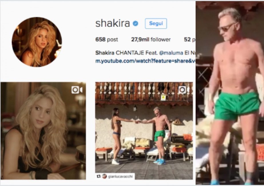 ROMA – Gianluca Vacchi conquista Shakira. La cantante colombiana è rimasta stregata dall’ultima “vacchi-dance” che l’imprenditore festaiolo ha inscenato con la fidanzata Giorgia Gabriele in montagna a Cortina. La sexy coreografia è infatti montata sulle note di Chantaje ultima hit di Shakira con Caluma. La cantante ha rilanciato il video sulla sua pagina Instagram lusingata del tributo.