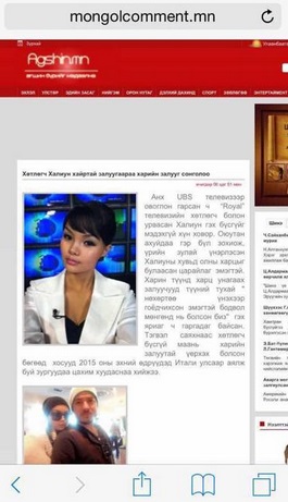 “I commenti romantici e i nazionalisti del paese di Gengis Khan si dividono in diatribe difficilmente traducibili. Succede nella Mongolia sospesa tra il passato socialista e un presente in bilico tra crescita economica e disparità sociale, dove il fidanzamento tra un occidentale e la giornalista più famosa del paese riesce a dividere il popolo dei social network (…) A Ulan Bator, capitale della Mongolia (…) Gianluigi Brescianini ha conquistato le prime pagine dei giornali locali per il suo fidanzamento con Khaliun (…) In Mongolia, il bergamasco trapiantato a Iseo ci è finito sei mesi fa dopo un’emozionante carriera da direttore di locali notturni in terra bergamasca. Combinazioni di vita, una proposta dallo zio e Brescianini diventa senior manager del colosso edile Gan Zangiila, joint venture tra un gruppo mongolo e la Valfer di Credaro (Bg), che risponde direttamente alla ticinese Baufer di Giubasco. ‘Non sapevo fosse così famosa’ ‘L’ho conosciuta al Centro, un locale per occidentali di Ulan Bator – racconta un innamoratissimo Brescianini -, mi ha colpito la sua bellezza e dopo averle offerto da bere ci siamo accordati per una cena’”.