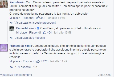 ROMA – Gianni Morandi torna a parlare di immigrazione, o meglio, a scriverne su Facebook. Ad aprile aveva ricordato i migranti italiani del Novecento, sbarcati in America, Canada, Germania e Australia. Lunedì ha invece elogiato i tedeschi che hanno accolto i rifugiati a Monaco con cartelloni di benvenuto.