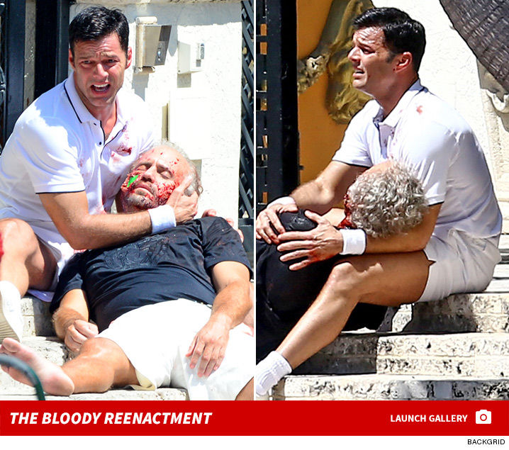 Ricky Martin, che nella serie vestirà i panni del partner di lunga data dello stilista, Antonio D’Amico, è stato immortalato proprio nel momento in cui stringe a sé il corpo insanguinato di Versace, interpretato da Edgar Ramirez.