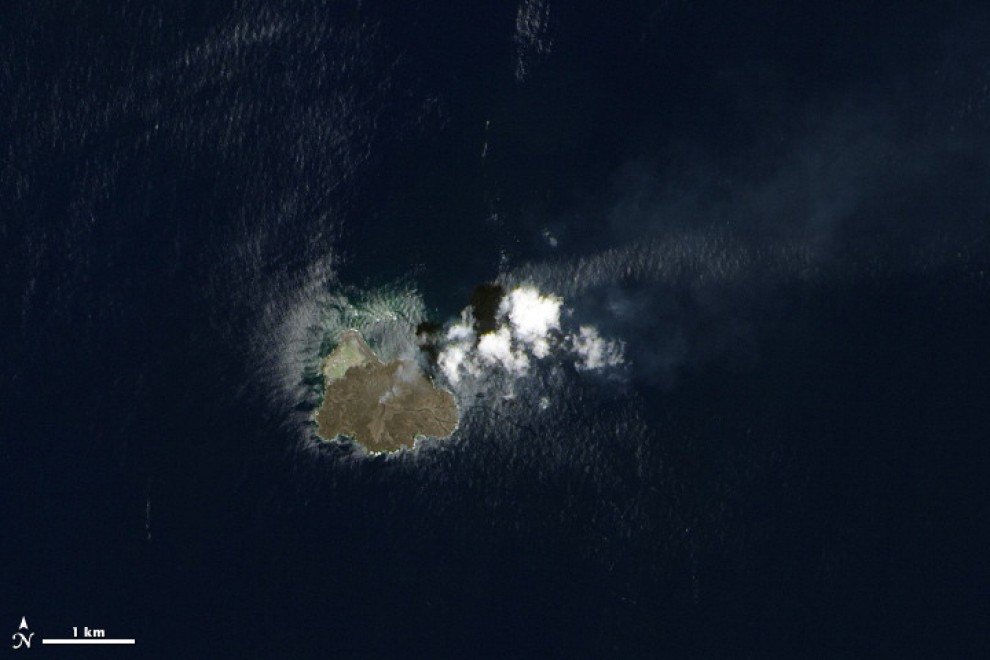 L’unione è avvenuta alla fine dell’anno scorso: l’attività che interessa la piccola isola non sembra però fermarsi. Lo mostrano anche queste immagini riprese dal satellite Landsat in cui si vedono colonne di fumo che fuoriescono dal cratere della nuova isola che ha già superato la larghezza di un chilometro.