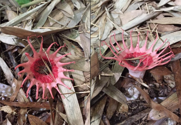 TOKYO – Un uomo giapponese ha pubblicato su internet la foto di alcuni funghi calamaro, specie molto rara, nota per il suo colore rosso carne. L’utente Twitter ci ha messo un po’ per capire di cosa si trattasse ed ha creduto inizialmente di trovarsi davanti ad una “talpa dal naso stellato” morta. Grazie però alla pubblicazione delle immagini, il cercatore di funghi ha capito che si trattava di una arachnoidea aseroe, rarissimo fungo rosa che fiorisce in mezzo ai boschi.