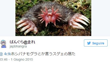 TOKYO – Un uomo giapponese ha pubblicato su internet la foto di alcuni funghi calamaro, specie molto rara, nota per il suo colore rosso carne. L’utente Twitter ci ha messo un po’ per capire di cosa si trattasse ed ha creduto inizialmente di trovarsi davanti ad una “talpa dal naso stellato” morta. Grazie però alla pubblicazione delle immagini, il cercatore di funghi ha capito che si trattava di una arachnoidea aseroe, rarissimo fungo rosa che fiorisce in mezzo ai boschi.