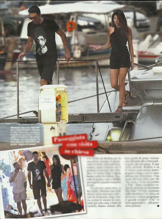 In barca si sono scambiati baci appassionati e coccole e al tramonto si sono fatti portare sulla terraferma per un veloce aperitivo in compagnia di amici. Terminata la vacanza il portiere della Juventus è tornato in Italia per il ritiro con la squadra.