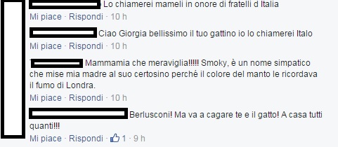 Così l’appello della Meloni a trovare un nome al gattino ha attirato moltissimi internauti. Peccato che qualcuno si sia fatto prendere un po’ troppo dall’entusiamo. E c’è chi le ha propone di chiamare il proprio gatto Marò: un segno tangibile dell’impegno della deputata nella battaglia a favore dei due fucilieri di Marina. Ma i suggerimenti sono tanti: su tutti Benito, un nome che per molti utenti sembra particolarmente appropriato per il micino.