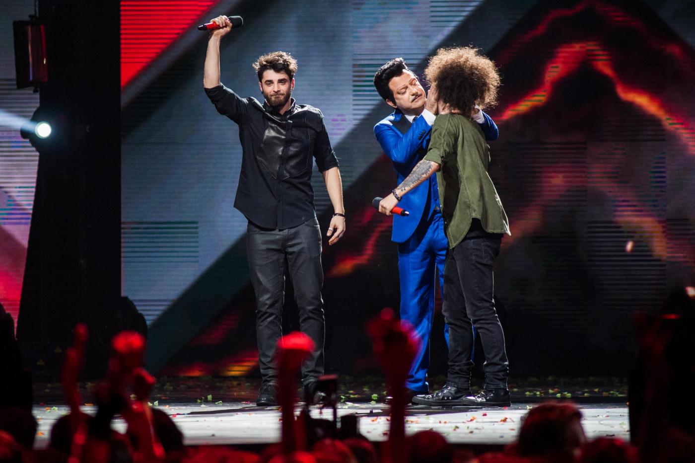 A seguire, in rapida successione, Davide, detto Shorty, si è confrontato con ‘Mondo’, Enrica con ‘La nuova stella di Broadway’ e gli Urban Strangers con ‘Buon viaggio’. Come spartiacque tra la prima e la seconda parte della finalissima, sotto i riflettori del Forum milanese sono arrivati i Coldplay, primi ospiti della serata. La band, dopo tre anni di assenza dall’Italia, ha scelto il palco del talent di Sky per presentare al pubblico italiano il singolo ‘Adventure in a lifetime’, ai vertici della classifiche radiofoniche, oltre ad ‘A head full of dreams’, brano che ha dato il titolo al loro ultimo album pubblicato in ordine di tempo e che ha visto la luce all’inizio di dicembre. Congedata la band di Chris Martin e soci, Cattelan ha annunciato il primo eliminato della serata: Enrica.