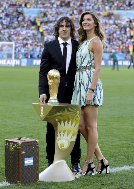 La modella ha poi portato la cassa contenente la coppa del mondo, consegnata poi alla Germania vincitrice dalla presidente brasiliana Dilma Rousseff, insieme a Carles Puyol, difensore della Spagna campione del mondo uscente: