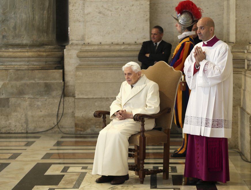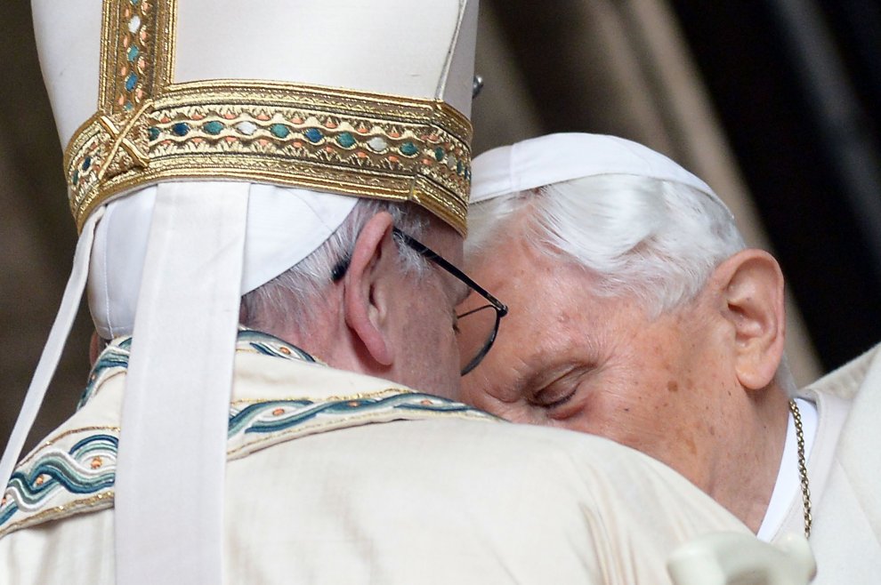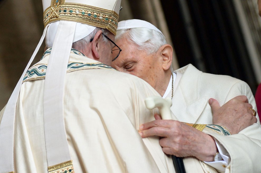 Dopo di che Francesco ha abbracciato il suo predecessore il papa emerito Benedetto XVI, e ha scambiato qualche parola con lui.