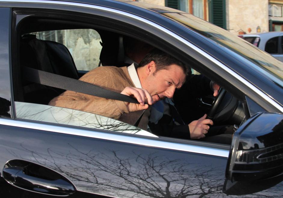 Matteo Renzi al Quirinale con la Giulietta (LaPresse)
