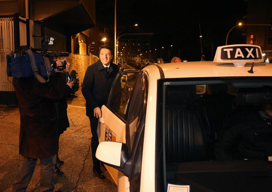 Matteo Renzi prende il taxi davanti gli studi Rai dopo esser stato ospite di Ballarò il 10 dicembre (Ansa)