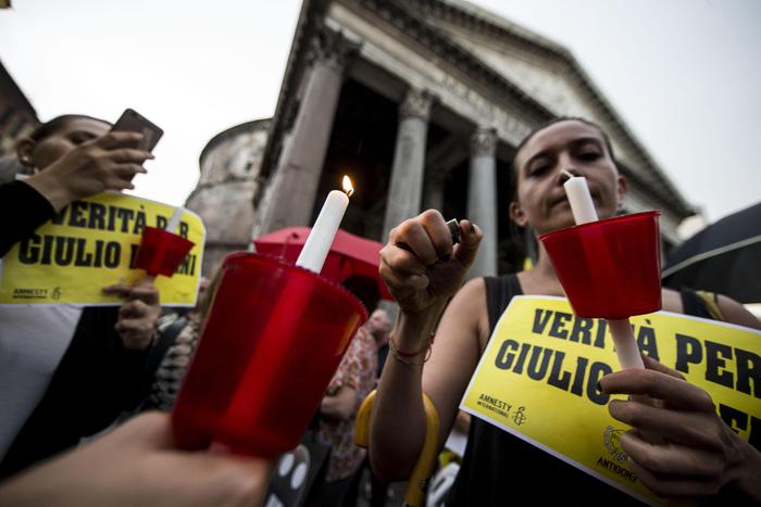 ROMA – Alle 19:41 in punto decine di fiaccole si sono accese davanti al Pantheon per chiedere A quell’ora di sei mesi fa il ricercatore scomparve per sempre dopo essere uscito di casa per incontrare un docente italiano, da anni trapiantato al Cairo. Il corpo senza vita e sfigurato di Regeni venne ritrovato otto giorni dopo e sulle cause della sua morte ancora oggi, dopo 180 giorni, si brancola nel buio.