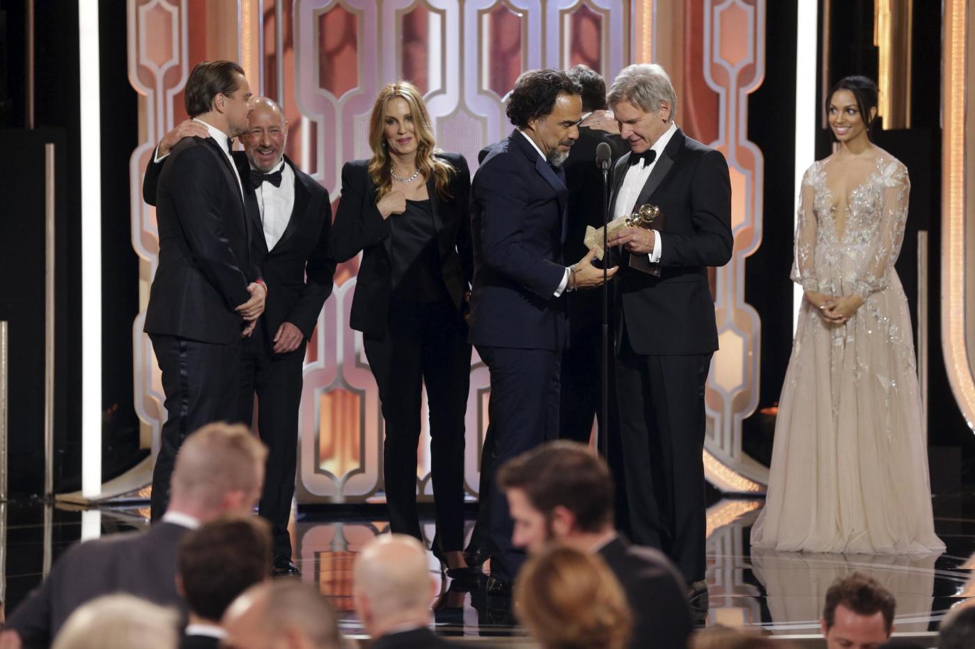 Tre premi importanti sono andati al drammatico Revenant – Redivivo: al film, al regista e al protagonista, ovvero Leonardo DiCaprio. A bocca asciutta, invece, Carol, con Cate Blanchett, sul quale si era concentrato il maggior numero di nomination. Vince anche l’Italia con il maestro Ennio Morricone, autore della colonna sonora del film di Quentin Tarantino The Hateful Eight. Il regista ha ritirato il premio per il compositore 87enne (per lui è il secondo Golden Globe, dopo Il pianista sull’Oceano).