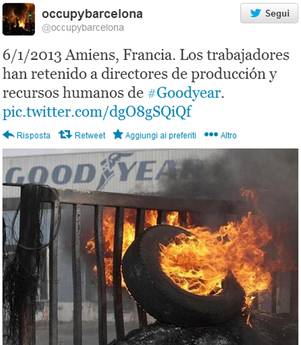 I dipendenti della Goodyear di Amiens che tengono in ostaggio due manager chiedono ”una tavola rotonda con il prefetto e il direttore delle risorse umane su indennità e conseguenze” per gli operai dello stabilimento, che sarà chiuso nelle prossime settimane. Vogliamo ”che i dirigenti capiscano che dopo 7 anni di lotta la nostra motivazione è intatta. E’ la nostra fabbrica, punto”, scrivono sulla loro pagina Twitter.