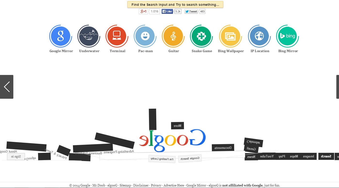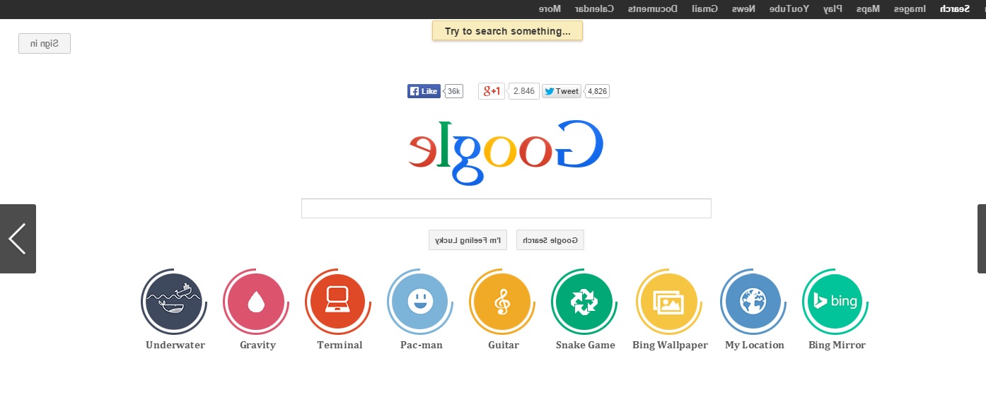 Una volta aperto il motore di ricerca Google Mirror se cercherete Blitzquotidiano anche la digitazione avverrà al contrario, proprio come se stesse osservando lo schermo del vostro computer da uno specchio. Il colosso di Mountain View ha anche pensato a differenti effetti per rendere la ricerca più divertente: oltre allo specchio si può scegliere tra “Underwater“, con dei simpatici mostri marini e la barra di ricerca fluttuante.