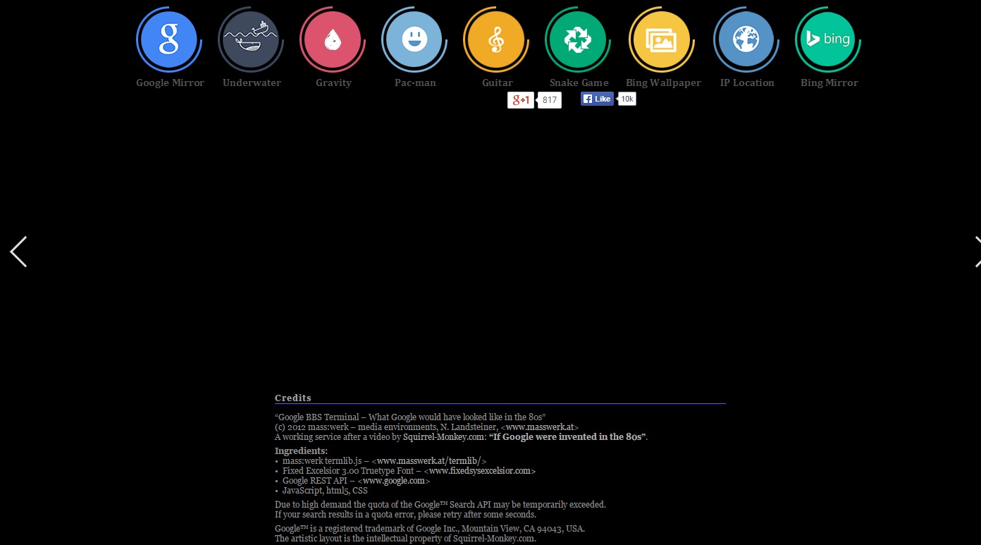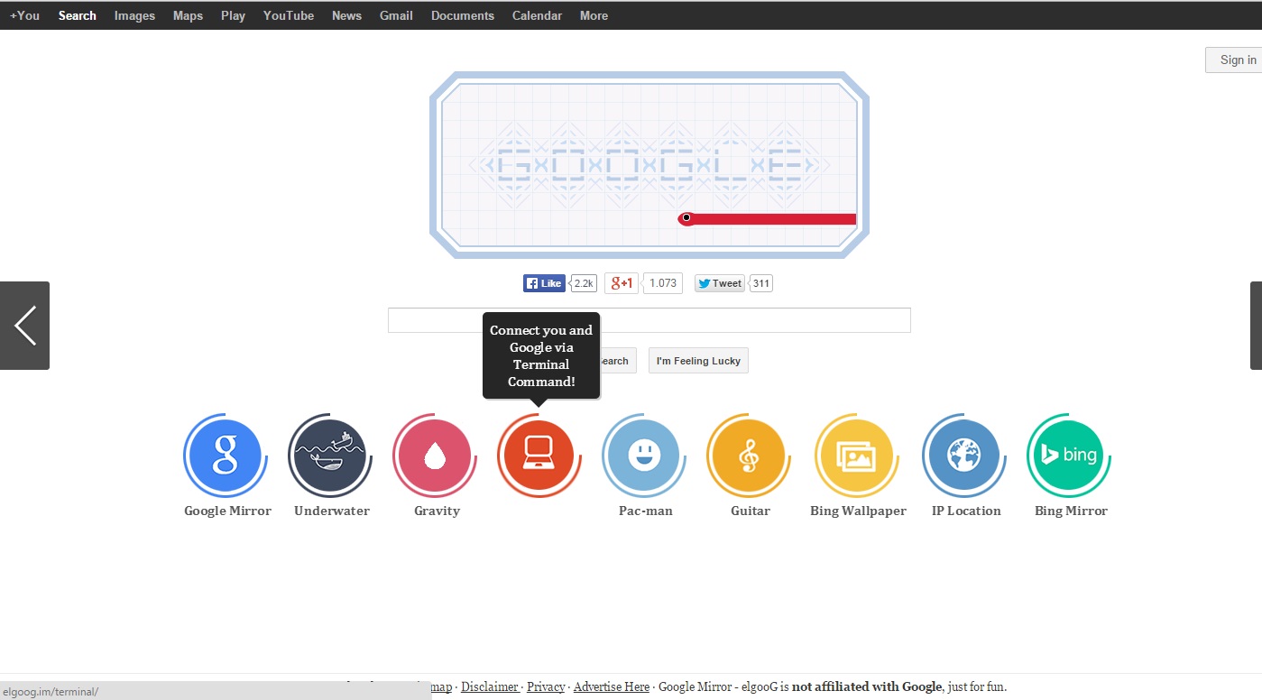 Oltre a Pac Man, qualcuno ricorderà sicuramente il videogioco “Snake” dei cellulari Nokia, riprodotto da Google nel suo logo, e ancora il “Bing Wallpaper“, l’IP Location che scopre la vostra posizione e infine il “Bing Mirror“, che fa il verso insieme al Wallpaper al motore di ricerca di Microsoft, principale concorrente di Big G.