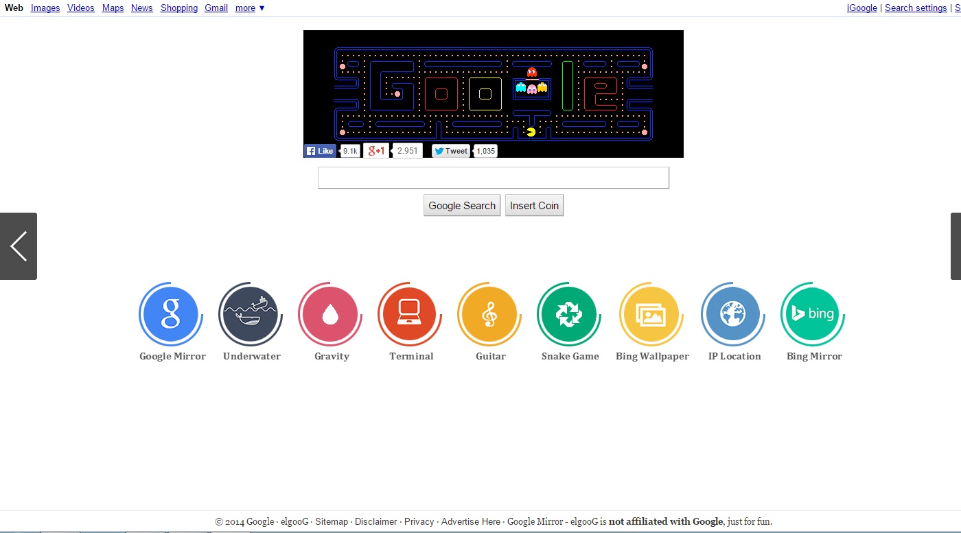ROMA – Una versione di Pac Man che corre tra le mappe di Google Maps, il prototipo di Panda e addirittura ben 10 differenti versioni del suo motore di ricerca: dal web allo specchio fino al verso al concorrente Bing. Digitando Elgoog sul motore di ricerca si aprirà una finestra che permetterà di passare da una modalità all’altra e di esplorare i 10 motori pensati da Google per un simpatico pesce d’aprile e per il divertimento dei suoi utenti.