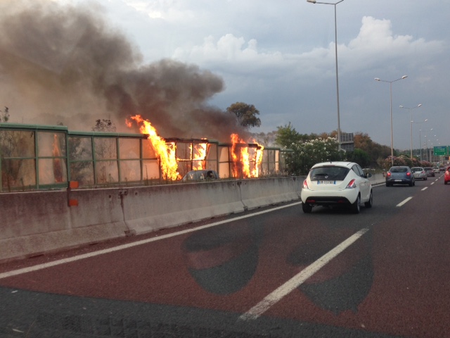 ROMA – Fiamme sul Grande Raccordo Anulare di Roma all’altezza dell’uscita Aurelia. L’incendio si è sviluppato nel pomeriggio di venerdì 24 luglio lungo lo spartitraffico che separa la carreggiata esterna da quella interna.