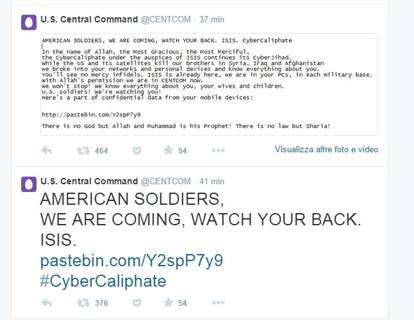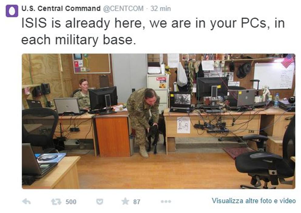Responsabili del Centcom hanno detto di “essere a conoscenza” della vicenda e che la “stiamo affrontando”. Sull’account Twitter @Centcom ora compare la scritta ‘CyberCaliphate’ con un messaggio: