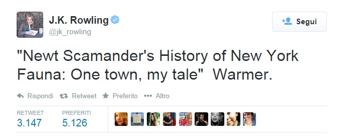 LONDRA – Un tweet della scrittrice J. K. Rowling scatena i fan. Poche parole con un nome: “New Scamander“. E subito la rete è impazzita intuendo l’arrivo di un nuovo capitolo della saga di Harry Potter.