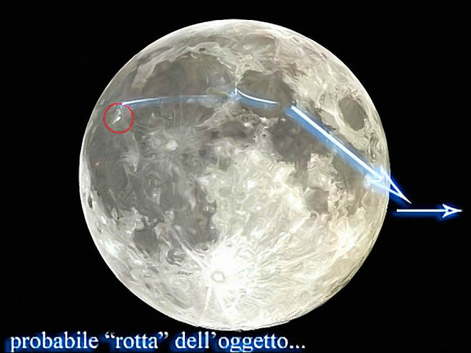 “l’enigmatico oggetto appare di colore arancione e passa fulmineamente davanti alla luna prima di perdersi nello spazio, rendendo arduo l’inquadramento in categorie conosciute. I ricercatori del centro hanno notato che la zona del cratere Aristarchus da dove è sbucato l’ovni (oggetto volante non identificato) già in passato è stata teatro di strani avvistamenti”.
