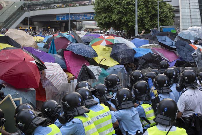 E a nulla è valso il rilascio del leader degli studenti Joshua Wong, 17 anni, dopo due giorni trascorsi in prigione. Wong è una delle 78 persone fermate nei giorni scorsi. Fra i manifestanti, il veterano della lotta per la democrazia Martin Lee, 76 anni, colpito in pieno viso dai gas lacrimogeni, ha definito “pazzesco” il modo in cui il governo di Hong Kong, a suo dire sotto gli ordini diretti di Pechino, sta reagendo. Davanti all’uso della forza, i manifestanti si sono presentati con in mano ombrelli e cellophane con i quali proteggersi dagli spray urticanti e dai lacrimogeni, dando anche mostra di una grande capacità organizzativa e disciplina: dietro ai dimostranti, infatti, gruppi di volontari raccolgono la spazzatura, dividendola per il riciclo.