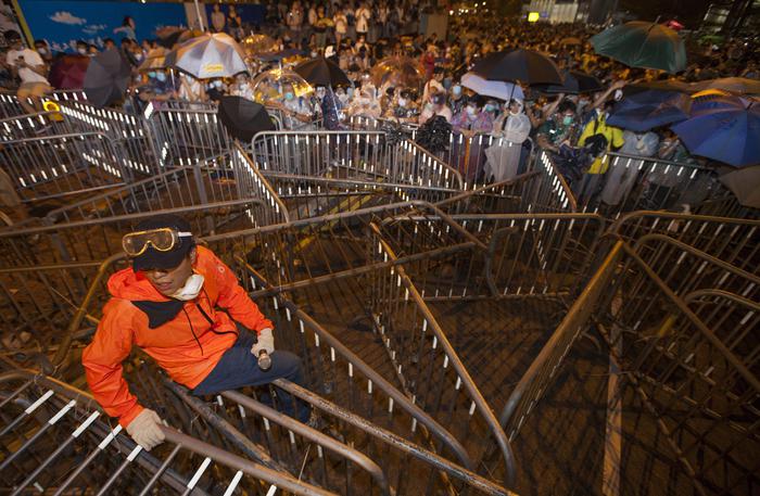 “Vogliamo solo la democrazia, staremo qui finché il governo non ci darà rispste”, dicono due giovanissimi volontari che distribuiscono acqua, frutta e biscotti ai partecipanti alla protesta. Più di 200 linee di autobus sono state sospese o deviate, il traffico è stato interrotto e diverse stazioni della metropolitana sono state chiuse. La polizia, dopo l’annuncio del ritiro degli agenti antisommossa da parte del governo, quasi non si vede. Dove ci sono, gli agenti si tengono in disparte oppure cercano di dialogare con i manifestanti.