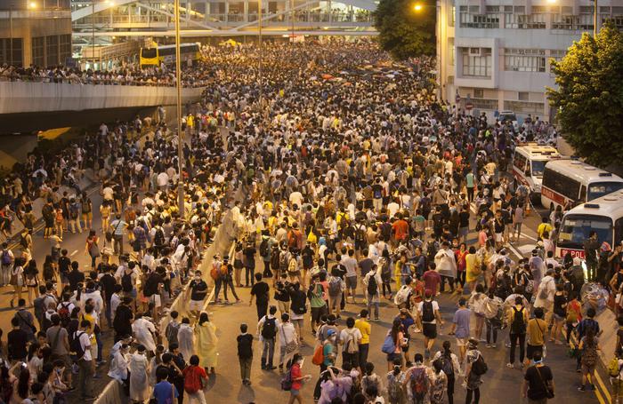 Dalla mattina di oggi, lunedì 29 settembre, i manifestanti bloccano una vasta area di Hong Kong Island che dal quartiere delle banche di Central si spinge fino al quartiere commerciale di Causeway Bay, e oltre. Altri concentramenti sono in corso in altre zone dell’ isola di Hong Kong e nella penisola di Kowloon, secondo i manifestanti.