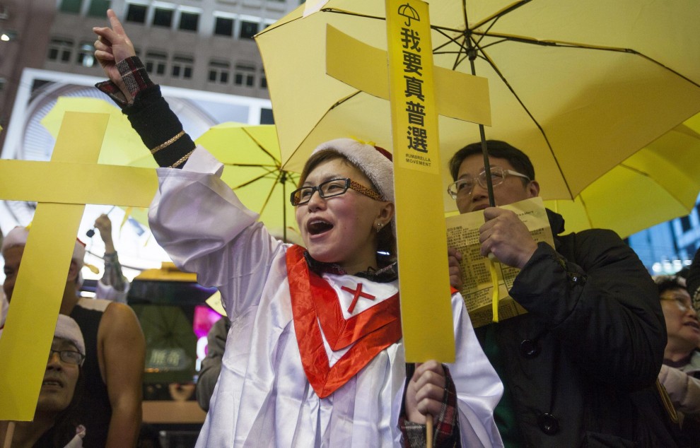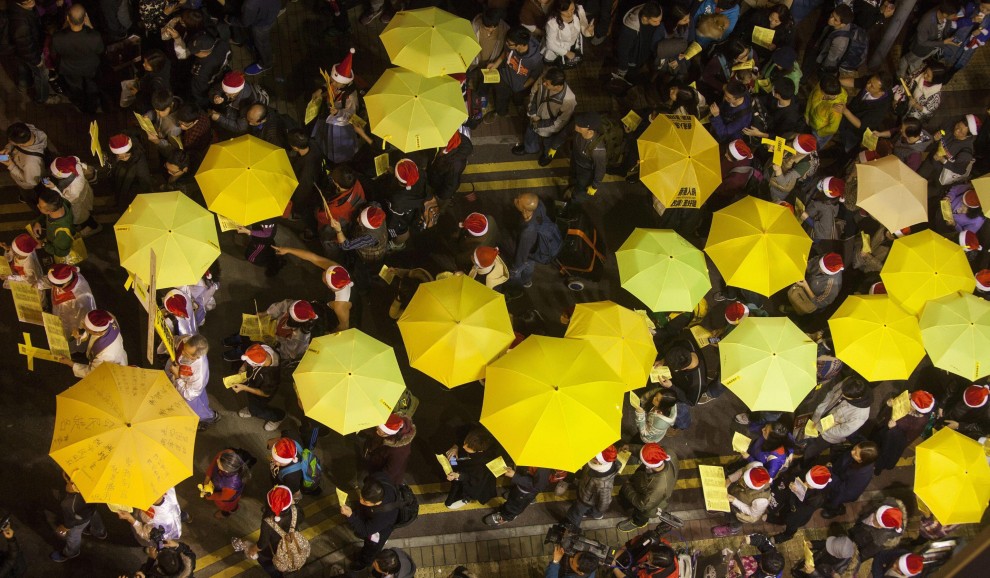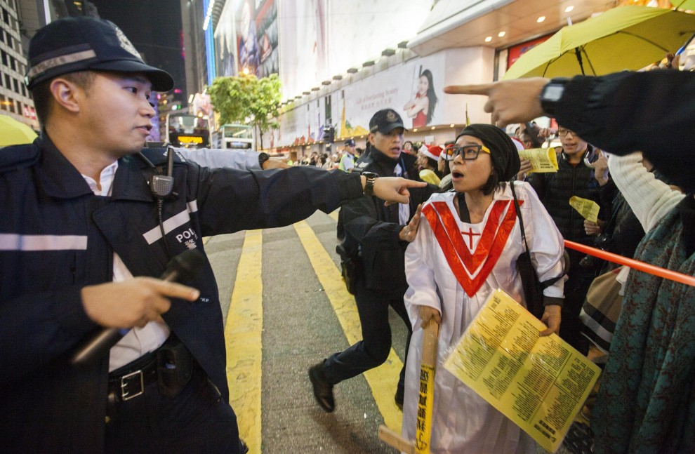 HONG KONG – In totale dodici persone sono state arrestate nella mattina di giovedì 25 dicembre a Hong Kong dopo diversi scontri fra manifestanti pro-democrazia e la polizia. Centinaia di persone sono scese in strada a Hong Kong per la prima volta dopo lo smantellamento dei presidi in centro città la settimana scorsa, con uno striscione che diceva “Vogliamo un vero suffragio universale”. La polizia li ha caricati con manganelli e spray urticanti per liberare le vie.