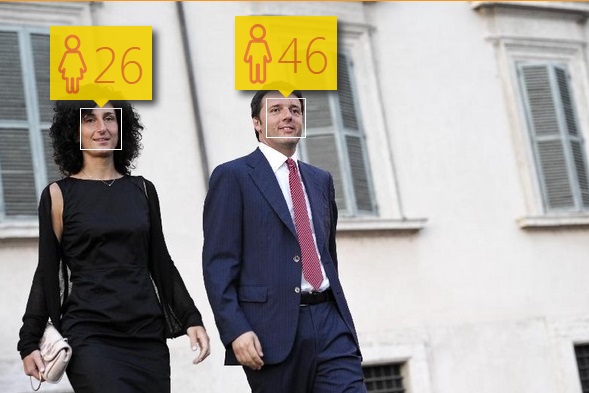 Abbiamo provato questo giochino con alcuni personaggi famosi: i risultati sono a volte sorprendenti: Matteo Renzi ha 40 anni ma nelle foto ne dimostra piĂ¹ di 40. Particolarmente impietoso il paragone con la moglie Agnese Landini, che ne ha 38 ma ne dimostra 10 di meno. Va bene anche Silvio Berlusconi, che dimostra 65 anni invece dei suoi 78. Male Andrea Pirlo (sembra che abbia 43 anni) e Matteo Salvini (51 anni invece di 42). Laura Boldrini invece dimostra 15 anni di meno.