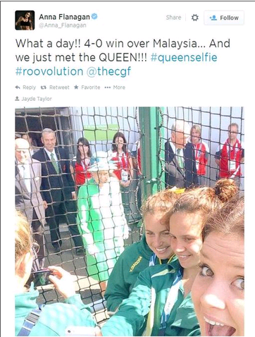 LONDRA – Due atlete della squadra di hockey australiana in Gran Bretagna per i Giochi del Commonwealth, hanno scattato un selfie, “rovinato” però dalla presenza inaspettata della regina Elisabetta II.